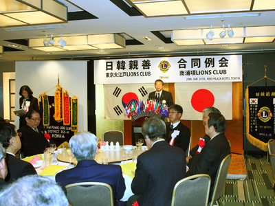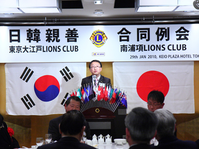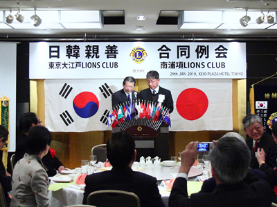 2010年1月29日、京王プラザホテルにてナンポハンLCの方々を迎え、日韓親善合同例会を伏見元国際理事、岡野地区ガバナー、石井複合議長、山浦国際理事候補者、河合第1副地区ガバナー、大石第2副地区ガバナー等、総勢100名を超える方々の出席を得て開催致しました。