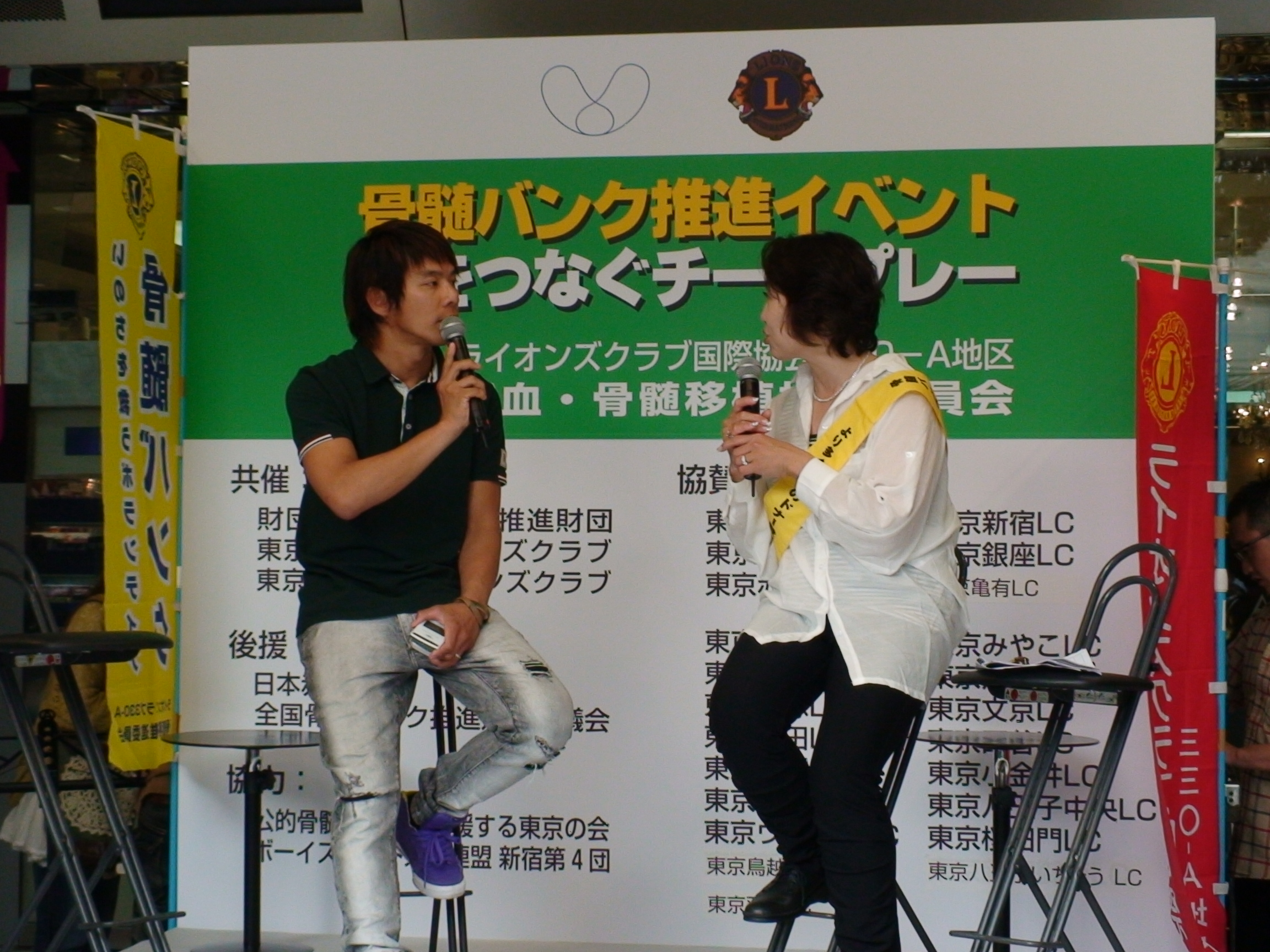 10月 3日(日)新宿のスタジオアルタで、330−A地区主催の献血・骨髄移植推進委員会のアクティビティが行われました。 11時から献血・骨髄移植委員長のオープニングの挨拶、ガバナーの挨拶で始まったイベント、地区から28のクラブが協賛して行われました。 12時から東口・献血車周辺・ライオン像周辺等5か所で、ボーイスカウト・カブスカウトの協力のもと募金活動も行われました。 イベントにはアニメソングのプロたちも賛同して参加してくださり、プチ秋葉原状態の一時もありました。