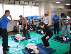 参加者は、14名。今回、女性の活躍が目を引きました。講師の方々の例話や救命技能の実演などにうなずき、積極的に実践を経験していきたいという姿勢に、感動いたしました。