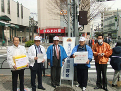 | 3月15日(火) 午前9時 会長が立川警察署へ伺い許可書を受け取る。 午前10時 募金開始 予定では3時までであったが4時まで延長 メンバー40名参加 午後4時 募金活動終了 募金総額 3,293,177円 (詳細レポート:立川LC幹事 L笹本 報道機関への取材依頼) |