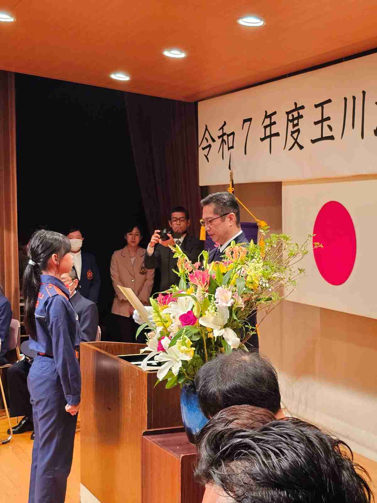4月27日 世田谷中町ふれあいホールにて玉川消防少年団入卒団式が開催され、根来会長、野々幹事、山下事業委員長が出席しました。