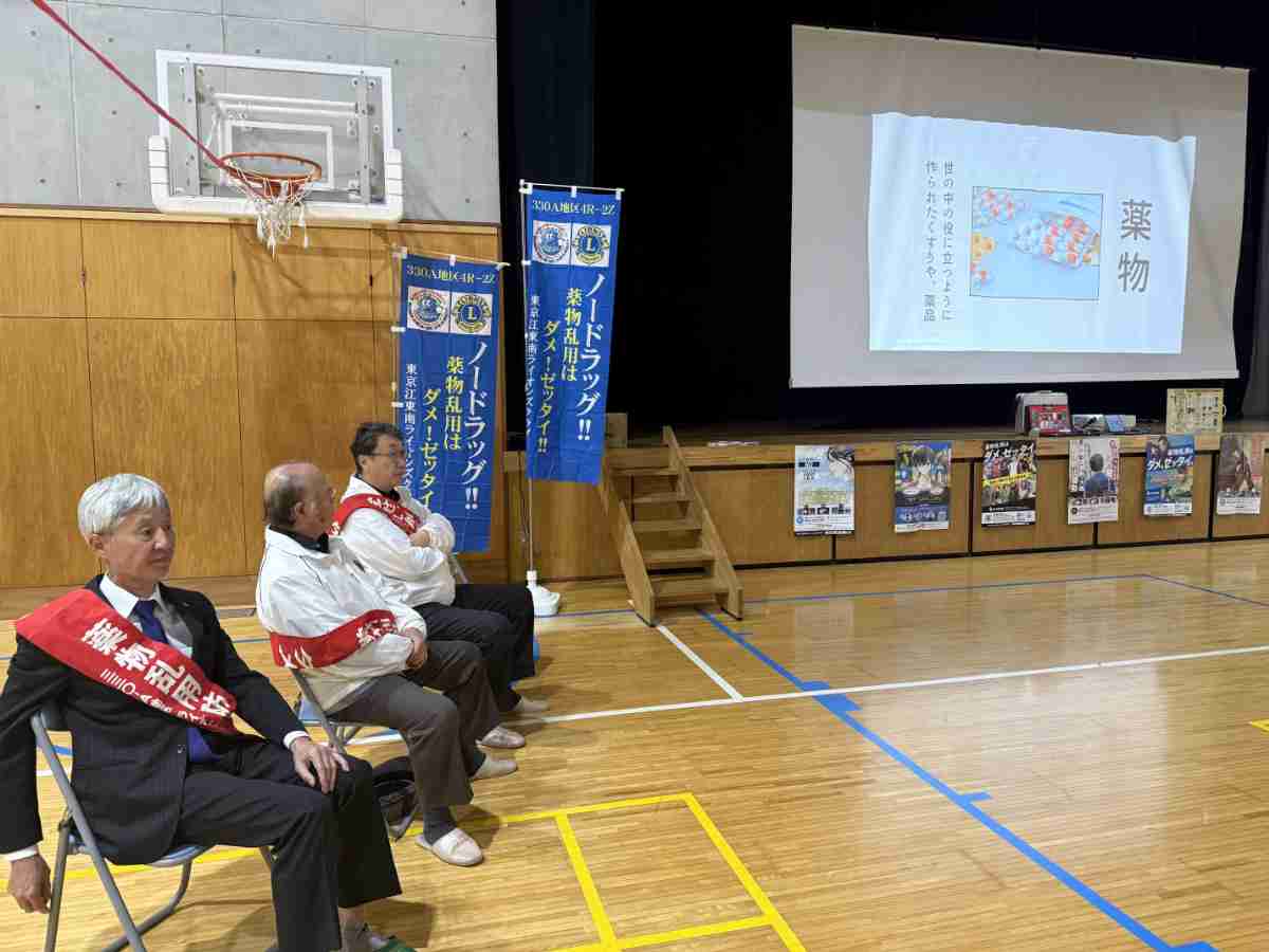 東京江東南LC主催・サポートで東京蒼天LC2025年12月2日火曜日 江東区立有明小学校にて6年生3クラス86名の生徒を対象に体育館で薬物乱用防教室を開催しました。