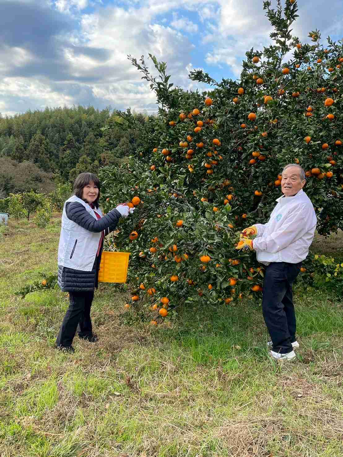 今年の温州ミカンはどれも大粒。どっしりと枝が土につきそうなくらいに実が重たく、たわわに実って、当たり年だとか。私たちは慣れない脚立を使ったり、ミカンの木に登ったりして、ミカンちぎりに挌闘するのですが、なかなか思うように手がそこに見える実まで届かない、、、籠がすぐ一杯になり何度も収集場所と木までを往復、汗をかきながら繰り返し、実質1時間半程度のミカン狩り支援でした。