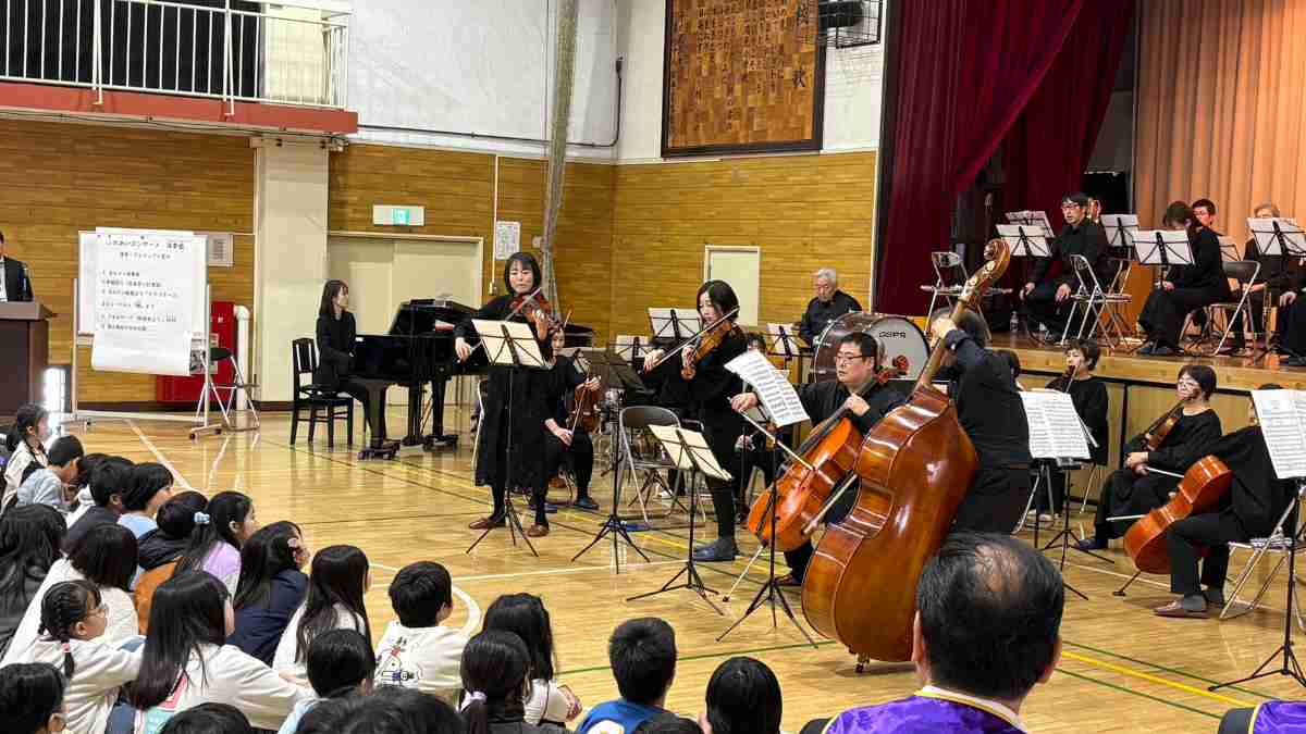 荒川区を中心に活動されている管弦楽団「アンサンブル荒川」の皆様にご協力いただき、区内小学校を会場として開催しています。