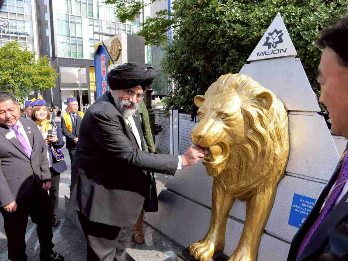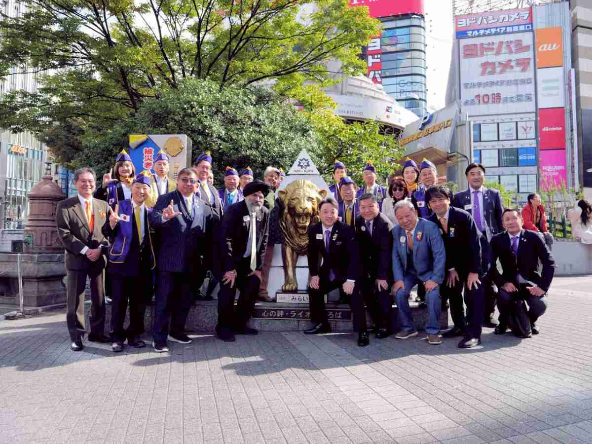 国際会長は、新宿駅東口のライオン広場を訪問し、上野ガバナー、仁科国際理事、田名部国際理事、中井元地区ガバナー、伊賀元地区ガバナー、佐原幹事、矢口RC、泊ZC、そして、望月会長を初めとする多数の新宿LCメンバーから熱烈に歓迎を受けた。