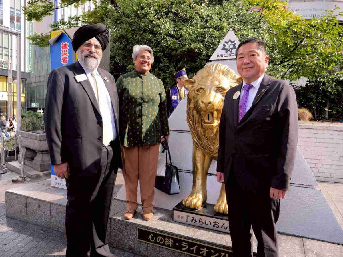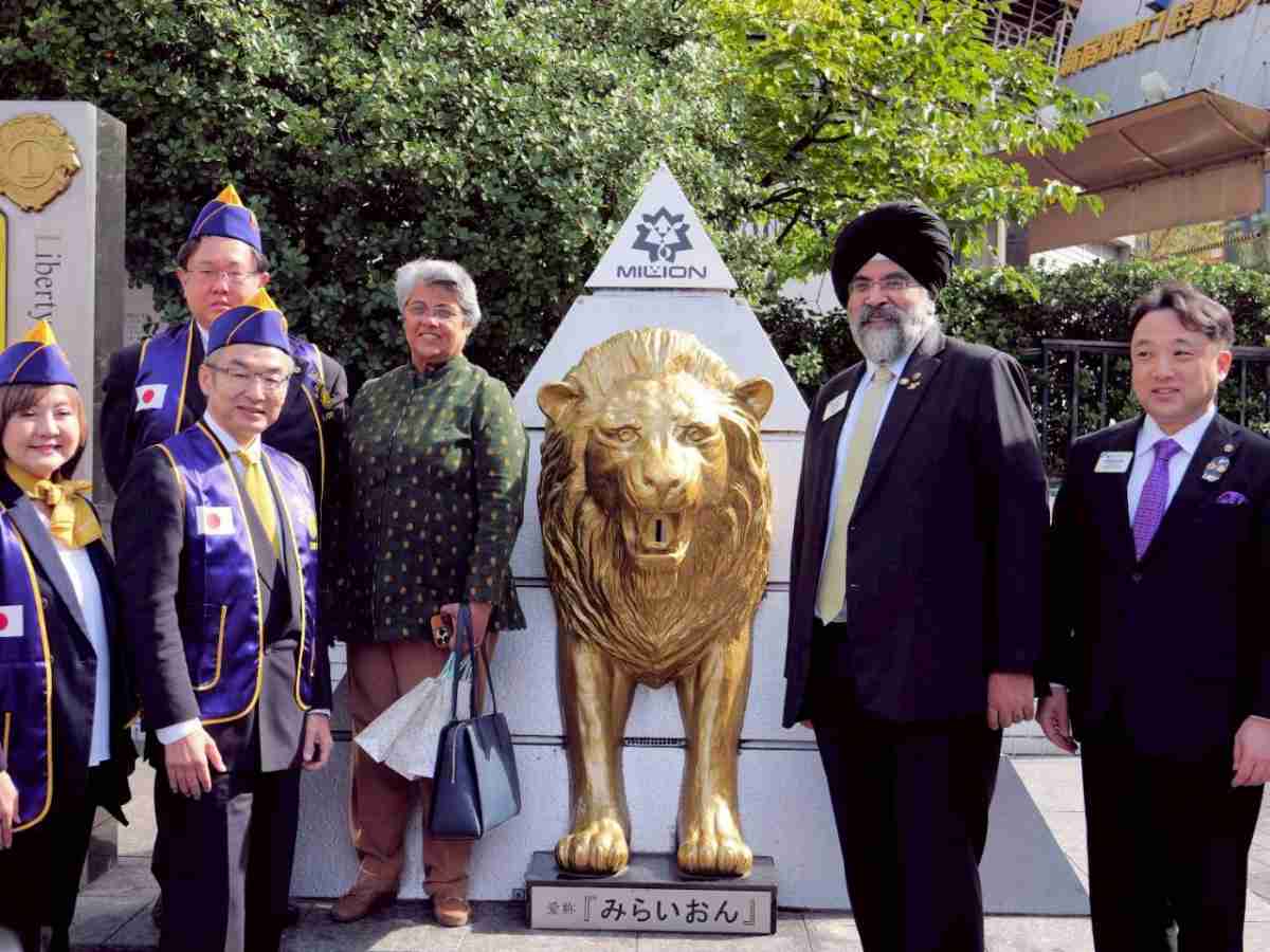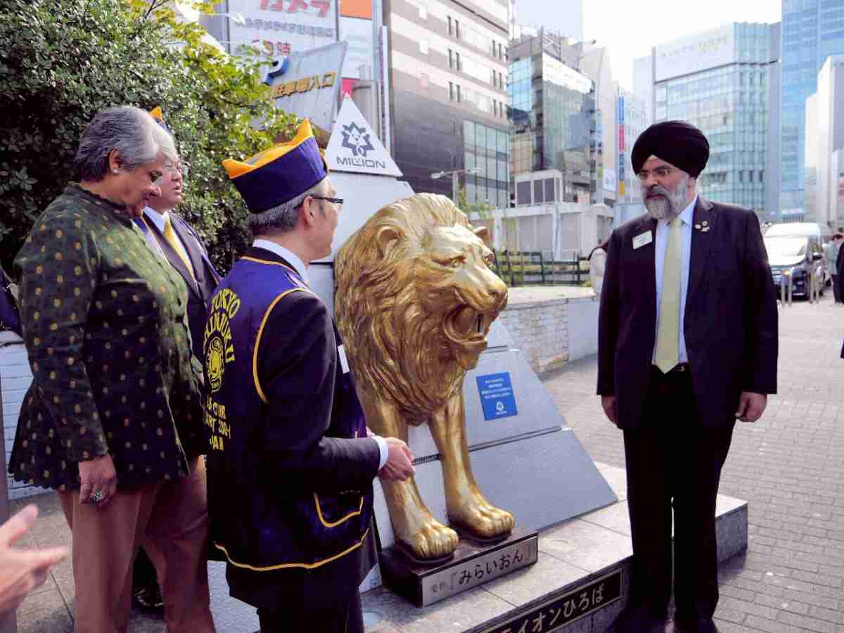 国際会長は、新宿LCのメンバーからライオン像が建立された理由や「みらいおん」と命名された経緯について説明を熱心に聞き入り、集まる募金の多さや、ライオンの口からお金を入れて「ガォー、ありがとうございます。」と御礼を言われることに感心している様子であった。