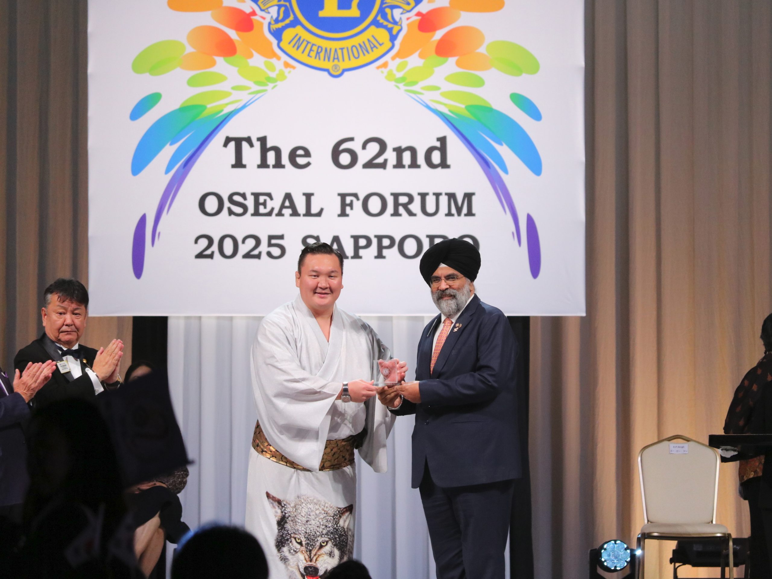 今回のOSEALフォーラムでは今までに無い取り組みがたくさん入りました。まず、開会式前にミッション1.5独自表彰として今期女性会員を1名以上入会させたクラブ会長にオリジナルピン贈呈とA.P.シン国際会長との記念撮影がありました。
