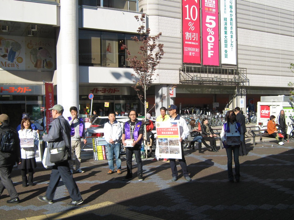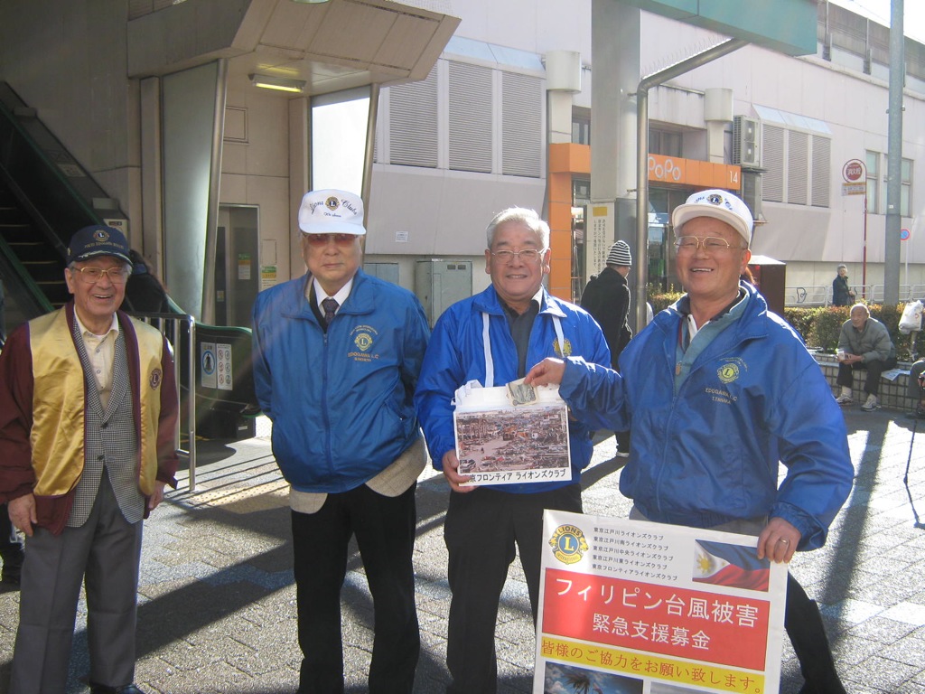 ゾーン5クラブ合同による。「フィリピン災害支援募金」を開催いたしました。 急な呼びかけにもかかわらず、ゾーン内すべてのクラブから数多くのメンバー並びにサポーターが参加し、小岩駅並びに葛西駅前にて実施いたしました。 クラブを超えた共同アクティビティーは新たなる価値の発見にも繋がり貴重な経験をいたしました。